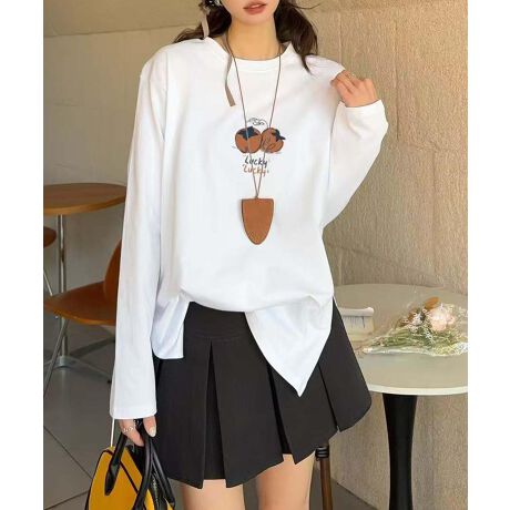 シンプルでスタイリッシュなデザインの長袖Tシャツ。サイドにスリットが施されており、前面のプリントが特徴です。シンプルながらもおしゃれな印象を与え、日常的に活躍するアイテムです。
