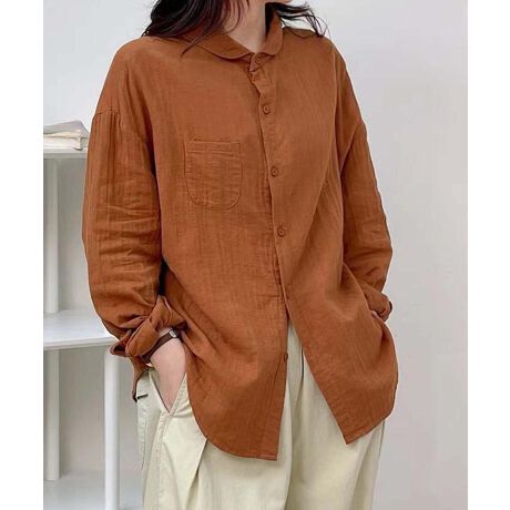 リラックス感のあるオーバーサイズシルエットが魅力のシャツです。フロントポケットと丸みのある襟デザインでカジュアルながらもこなれ感を演出。シンプルなボタンアップ仕様で、どんなスタイルにも合わせやすい一着です。