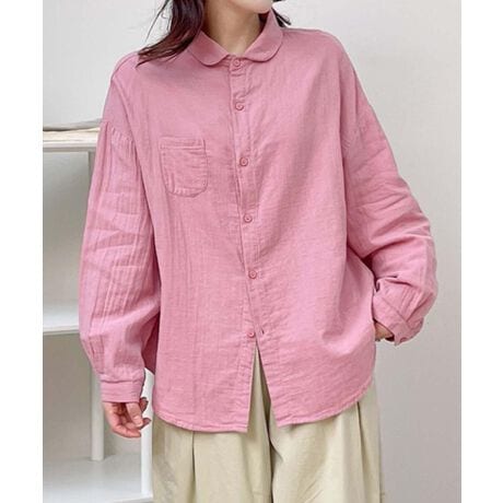 リラックス感のあるオーバーサイズシルエットが魅力のシャツです。フロントポケットと丸みのある襟デザインでカジュアルながらもこなれ感を演出。シンプルなボタンアップ仕様で、どんなスタイルにも合わせやすい一着です。