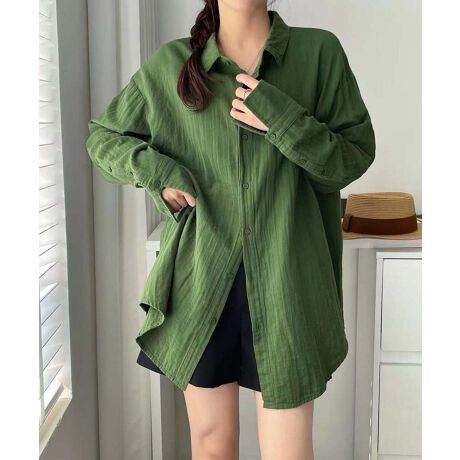 生地感が特徴的なチュニック丈のコットンシャツです。ナチュラルな質感が面白く思わず触りたくなる一枚。フロントボタンデザインで着脱も簡単に。ゆったりとしたシルエットでリラックス感のある着心地。カジュアルにもエレガントにも着こなせる万能アイテムです。
