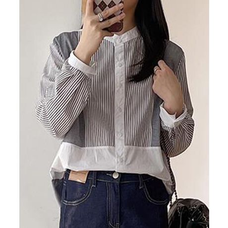 カラーブロックとストライプ柄を組み合わせた切替デザインが特徴的な長袖シャツです。バンドカラーでネックラインがすっきりと着こなせます。上品できちんと感がありつつ遊び心のあるデザイン。リラックス感のあるゆったりとしたシルエットです。ユニークな柄でおしゃれなスタイリングが簡単に叶います。
