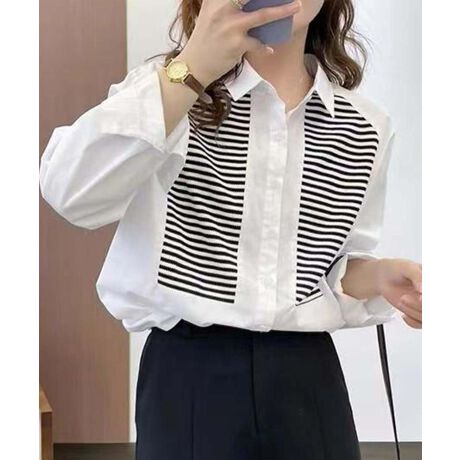 フロントのストライプパネルが特徴的な長袖オーバーシャツです。ゆったりとしたシルエットで、リラックス感のある着心地。シンプルなデザインながらも、ストライプ柄がアクセントになり、おしゃれな雰囲気を演出します。