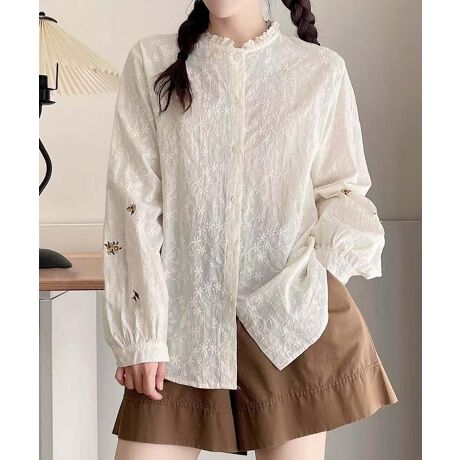 刺繍デザインフリル襟シャツブラウス
