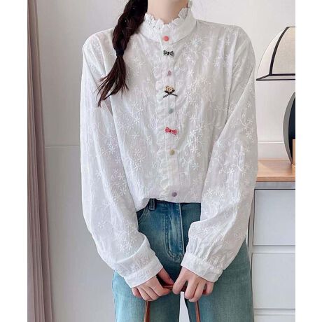 フリルカラー刺繍デザインシャツ