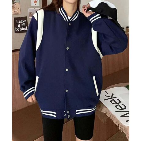 スポーティーなリブデザインが特徴のスタジャン。袖と裾のリブがアクセントとなり、全体的にスタイリッシュでありながらカジュアルな印象に。フロントにはボタンが施され、シンプルながらもデザイン性の高いアイテムです。