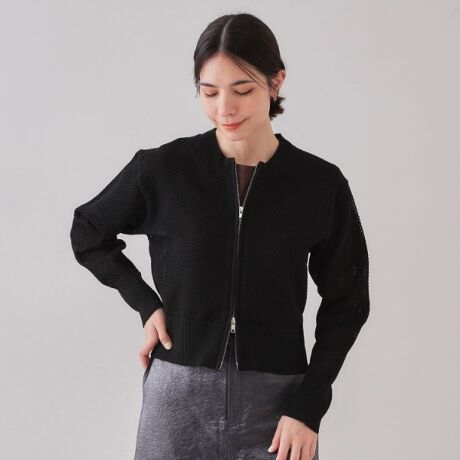メッシュ編みのブルゾンテイストニットカーディガン。