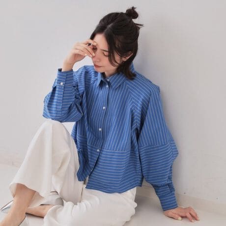 ・お袖とボディに切替デザインを施し、立体的なシルエットに仕上げたシャツブラウス