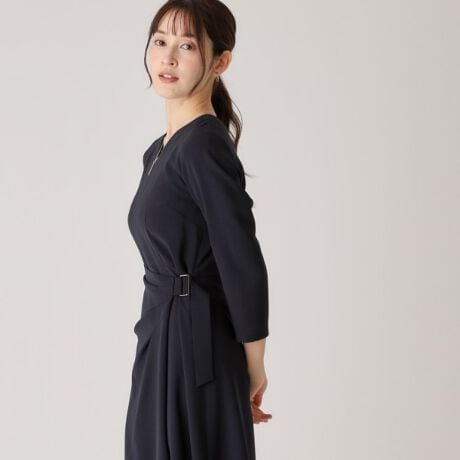 アシンメトリーなラップ風がデザインポイントのワンピース。