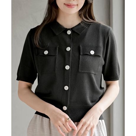 衿付き半袖ニットカーディガン