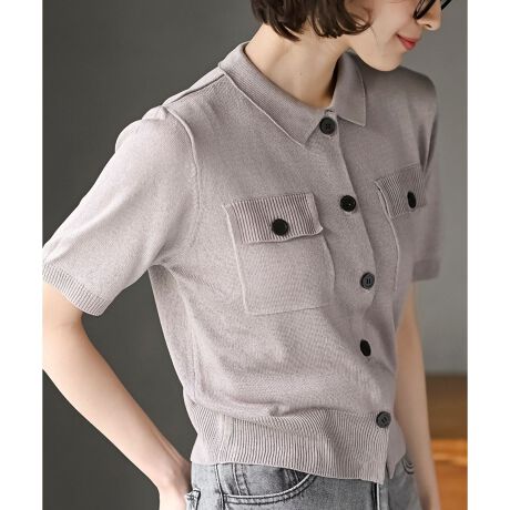 衿付き半袖ニットカーディガン