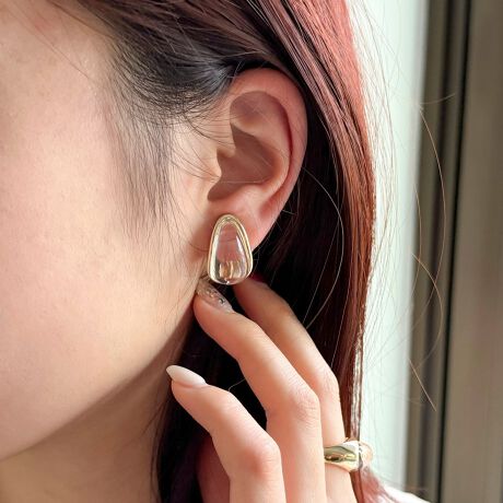 ・艶感のあるフレームと、ちゅるんとした透明感のあるデザインが印象的なイヤリングです