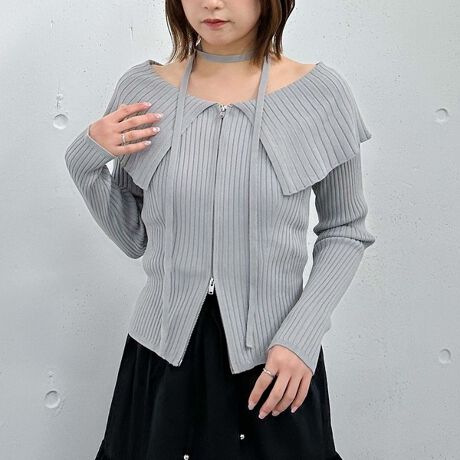 麻タッチオーバーカラーオフショルニット