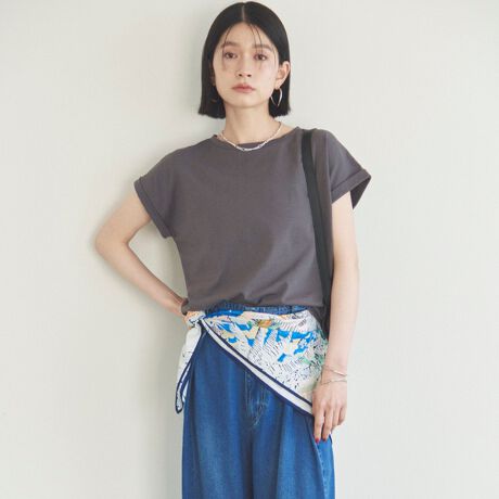 ・袖の折り返しや少し前後差のある裾など、さりげないディティールが着まわしやすいデザイン