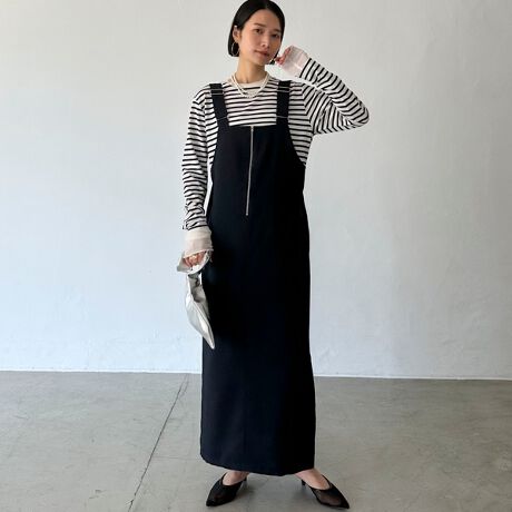 ・肩のストラップは調整できるのでレイヤードも自在でロングシーズン着られます