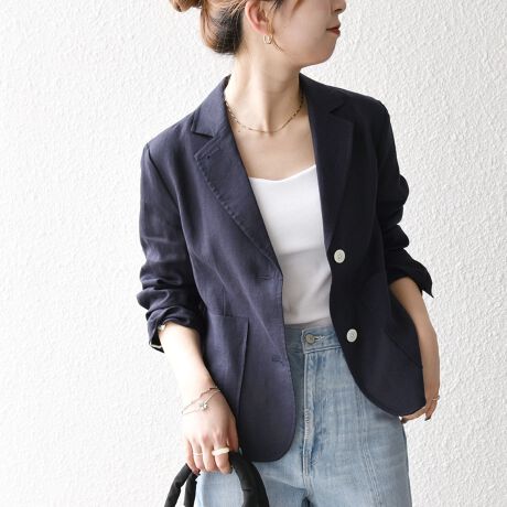 カーディガン感覚でさらっと羽織れるリネンジャケット。