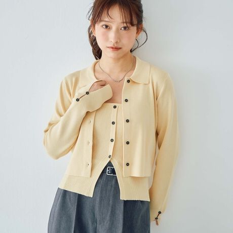 カーディガンとニットキャミがセットになったアイテム。