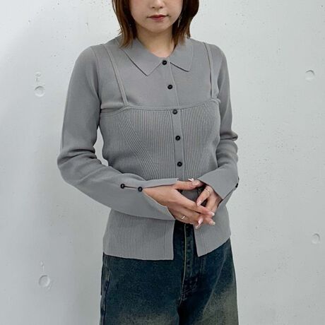 カーディガンとニットキャミがセットになったアイテム。