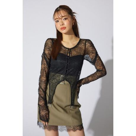 【繊細なレースを使用したデザイントップス】■ポイントストレッチのきいた繊細なレースを使用した春らしいシアートップスが完成しました。裾にはアクセントを効かせるためにシルバーを付け、モード×フェミニンな印象に。■ディテール前後2WAYで着用可能なデザインになっており、くるみ釦を見えるようにしてエレガンスな印象に。シンプルにフラットな面を前側にしてレイヤードコーデなど様々な着方でスタイリングを楽しめます。■スタイリング裾のパーツを活かしてアウトコーデがおすすめ。シンプルにデニムに合わせても◎タイトスカートやマーメイドスカートとの合わせもおすすめです。■生地透け感:あり裏地:なし伸縮性:あり光沢感:なし厚さ:薄手■商品のお気に入り登録お気に入りアイテムの再入荷・在庫1点などの通知を受け取ることができます。[注意事項]※画像の商品はサンプルです。実際の商品と仕様、加工が若干異なる場合があります。※画像の商品は光の照射や角度、お使いのモニター環境により、実物と色味が異なる場合がございます。※着用、お取り扱いの際は、アテンションタグをご確認ください。