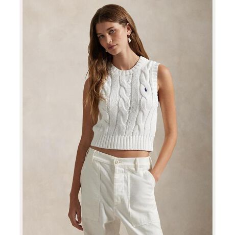 柔らかなコームドコットンでケーブルニットに編み上げたクルーネックのセーターベスト。モダンなクロップドフィットに仕立て、胸にシグネチャーのポニー刺繍を施したアイテム。・クロップド丈、スリムフィット / 腰上丈・リブニットのクルーネック / ノースリーブのシルエット / リブニットのアームバンド・左胸にシグネチャーのポニー刺繍 / リブニットの裾・Ralph Laurenのコットン製品を選ぶことで、環境の保護と修復に努めながら、コットン業界が今後も成長を続けられるように支援するBetter Cotton(TM)ミッションへのRalph Laurenの取り組みをサポートすることになります・本商品は物質収支方式に則って材料を調達しているため、全ての製品にBetter Cotton(TM)が含まれない可能性があります。・モデル身長178cm、着用サイズS※商品の色味は、光のあたり具合など諸条件により色感が多少異なって見える場合がございますので予めご了承下さい。 【素材】・本体:綿 100% 装飾部分を除く【生産国】カンボジア