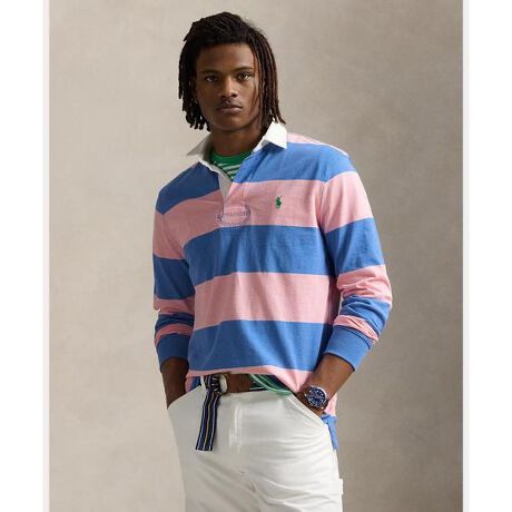 柔らかなコットンジャージーで仕立てたラガーシャツ。大胆なストライプとシグネチャーのポニー刺繍が特徴の一着。・クラシックフィット:Ralph Laurenで最もゆったりとしたシルエット / 低いアームホールとゆったりとした袖・ツイルのラグビーカラー / 3つボタンの前立て / ラバーボタン・長袖、リブカフス・ストレートなスリット入りの裾・左胸にシグネチャーのポニー刺繍・モデル身長185cm、着用サイズM 【素材】・本体:綿 100% 装飾部分を除く【生産国】カンボジア