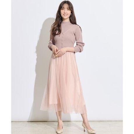 昨年春に大人気だったワンピースが今年はハイネックで登場♪【上品な輝きを放つリッチなボリュームチュールが大人フェミニンに仕立てる、ドッキングアンサンブルワンピース】【Point】・艶のような上品な輝きを放つ2種類の微配色チュールを重ねたドッキングアンサンブルワンピース。・カーディガンはビジューボタンがアクセントに。単品使いしやすいベーシックな着丈で着回しできます。・プチハイネックのニットがクラシカルな品の良さを演出。今年らしいさりげなく輝くラメニットがお顔映りを綺麗に見せてくれます。・カーディガンの肩を落として着ることで、さりげない肌見せができ、大人な抜け感を楽しむことが出来ます。ケア方法:ドライクリーニング透け感:なし裏地:あり伸縮性:あり光沢感:微光沢生地の厚さ:〈ニット〉中肉〈スカート〉薄手