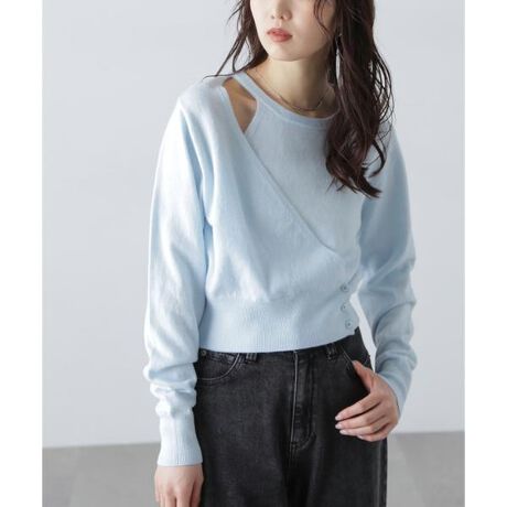 キャミソール&カシュクールニットをドッキングしたデザインニット。片肩のみをキャミソール仕様にし、カシュクールを重ねた肩にカットアウト見えするデザイン。キャミソールは脇線で縫い合わせているので、セパレートする心配はございません。程よくコンパクトサイズで、ボトムスにインしなくてもスタイリングが決まりやすい着丈感。粗野なメランジカラーもポイントです。ボトムスはショートからフルレングスのパンツ、スカートとも着回せます。※モデルの着用画像の場合、光の当たり具合により、実際の色味と異なって見えることがございます。色味は、商品単体の画像をご参照ください。
