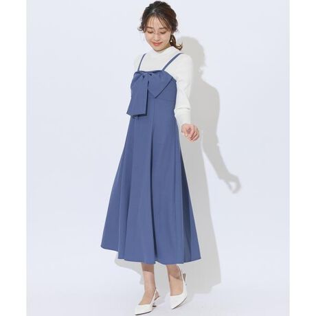 【目を惹く胸元のビッグリボンがトレンド感のあるロマンティックな着こなしに仕立てる、美シルエットキャミワンピース】【Point】・トレンドのリボンディテールを大胆にデザインした美シルエットキャミワンピ―ス。・バスト下で切替を入れることで目線アップ。背面にはゴムを入れることで優しく身体にフィットしながら、すっきりとした美シルエットに仕上げました。・柔らかなドレープ感があり、歩くたびに女性らしい揺れ感を楽しめるワンピースです。・肩紐にはアジャスターが付いており、体型に合わせた長さ調整が可能です。ケア方法:手洗い可能透け感:なし裏地:なし伸縮性:なし光沢感:なし生地の厚さ:中肉