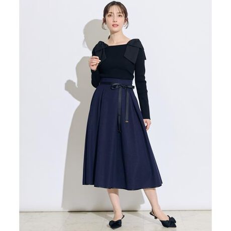 バイカラーリボンベルトパイピングラメツイードスカート