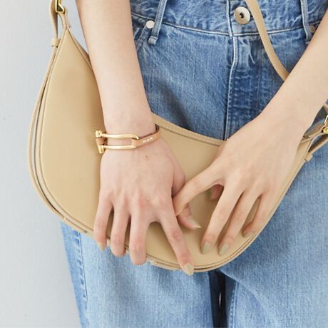 レザーを巧みに組み合わせたネックレスや大ぶりなバックルを使用したブレスレットなど、馬術愛好家の彼女ならではのインスピレーションから作られたアクセサリーが展開されています。