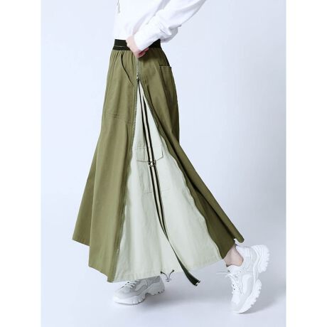 ジップを閉じてタイト目に履くことも、開けてフレアシルエットで着こなすことも出来る1枚。