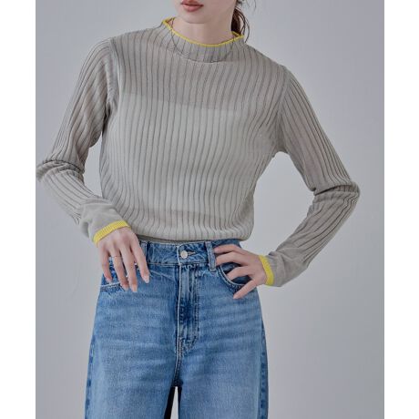 フィット感ある薄手のリブ素材の透け感がさりげない仕草に華を添え、首元と袖口の配色デザインは、抜け感とこなれた雰囲気を後押ししてくれます。