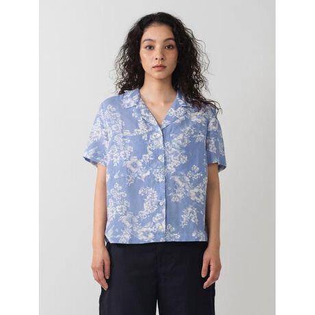 ボクシーでリラックスしたフィットでフロントボタンアップ仕様のシャツ。フロントには大きな2つのポケットを配し、開襟デザインも特徴です。フローラルの総柄なので春先から活躍する一着です。