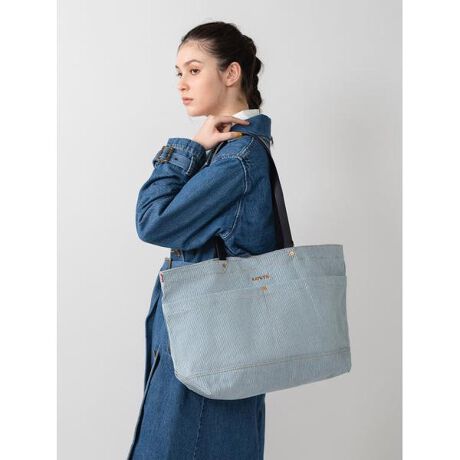 耐久性に優れたコットンキャンバス生地のストライプ柄のトートバッグ。Levi's□の刺繍ロゴを施し、外側・内側ともにポケットを配したデザインで機能性も備えています。容量もあるので春先の羽織ものも収納出来、重宝するアイテムです。※「(R)」のみが表記されたレッドタブは、LEVI'S(R)の文字が含まれるレッドタブと同様に製品不具合ではありません。不良品ではございませんので、交換・返品をお受けできません。また、タブの種類もお選びいただけませんので、予めご了承くださいませ。