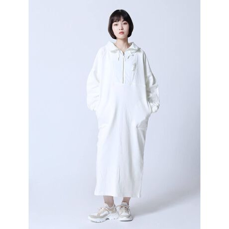 フード付きハーフジップワンピース