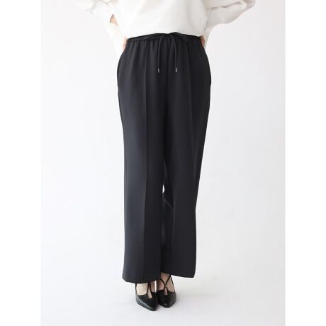 センタープレスを施し、脚線を美しく魅せるストレートシルエットパンツ。柔らかな肌当たりとゴム仕様のウエストで、イージーな履き心地を叶えます。合わせるトップスのテイストを選ばず、幅広いシーンで着回し可能です。