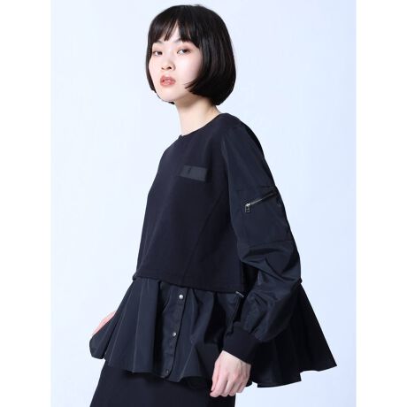 ペプラムヘムが特徴の異素材ドッキングトップスが新作入荷。