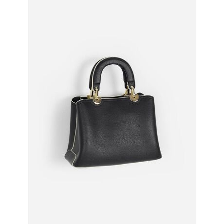 バイカラーパイピングの縁取りが、デザインに華を添えるエコレザーのハンドバッグ。