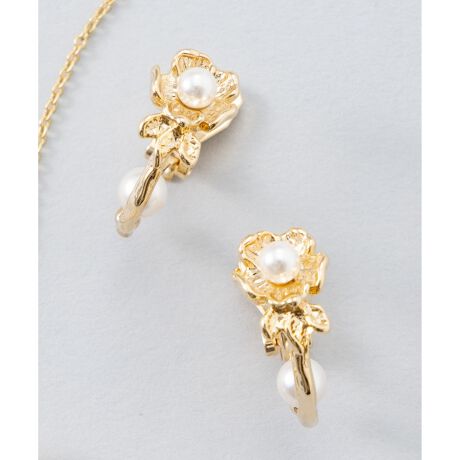 フラワーモチーフとパールを組み合わせた華やかなイヤリング