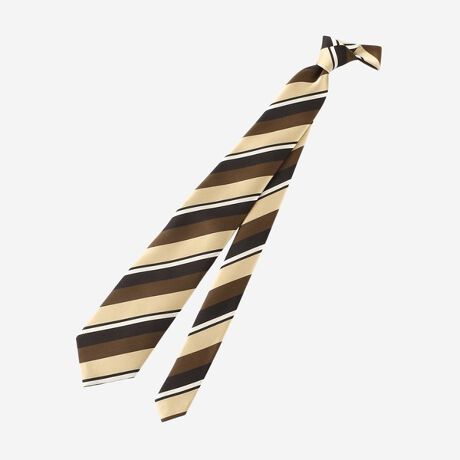 [型番:G1820504__]糸の風合いと光沢、発色を活かす為、敢えて扱いの難しい甘撚りの糸を使用し、低速の織機で時間をかけて織り上げたストライプです。英国らしいレジメンタルを、サテン、綾、バスケットと組織を切り替えて表現し立体感を出しています。クラッシックかつモダンな印象のストライプタイです。結びシワからの回復力に優れた、ウール100%のダブルクロスを芯に使用しています。京丹後産地の製品です。