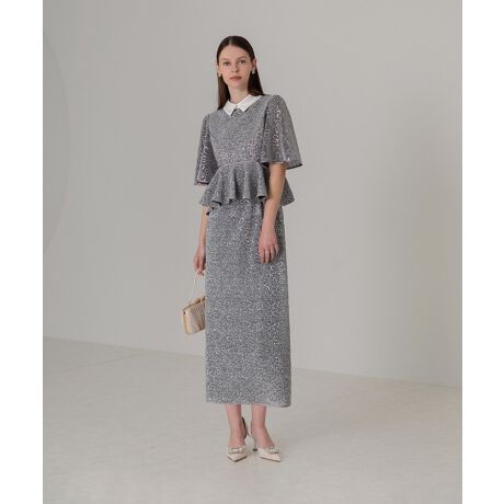 輝きが美しいスパンコールとグリッター調が、エレガントな印象を与えてくれるペプラムドレス。