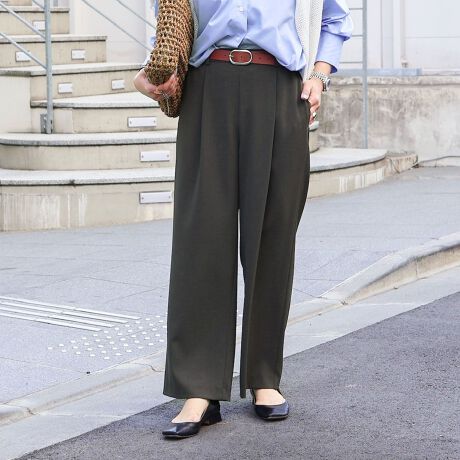 ・人気の梳毛調合繊素材を使用したワンタック・セミワイドシルエットパンツ