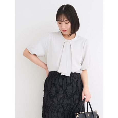 着るだけで品良くキマる!お手入れ簡単キレイ見えボウタイブラウス