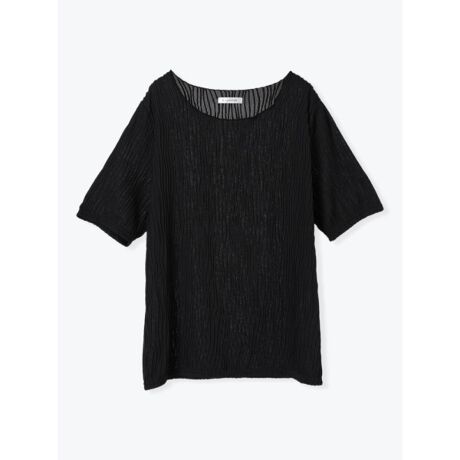 ・シンプルになりがちな無地トップスも表面感のある素材使いで1枚で着てもコーデのポイントに。