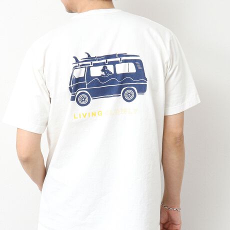 ・犬と車と「LIVING SLOWLY」のバックプリント