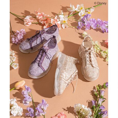 ”ラプンツェル”のドレスから着想を得た総刺繍の特別なシアースニーカー