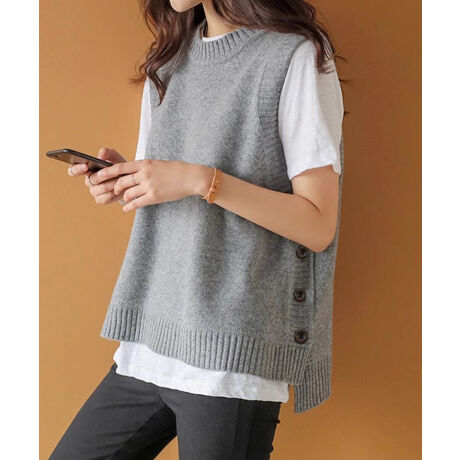 ニットベスト サイドスリット 春秋重ね着