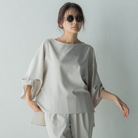 タックワイドスリーブボートネックブラウス≪洗濯機で洗える≫