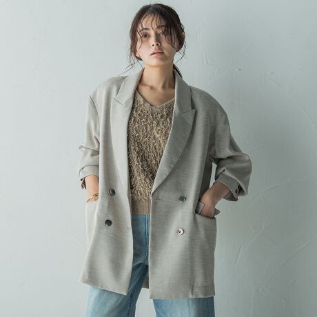 きちんと見えと抜け感を兼備した、ダブルブレストのオーバージャケット。
