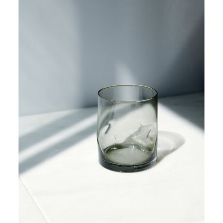 ガラスに光が反射し、透明感や視覚的な美しさと相まって、モダンでスタイリッシュなグラス。