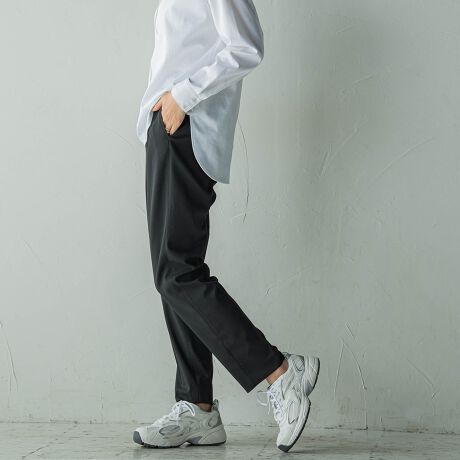 腰回りはゆとりを持たせ、裾にかけて絞ったテーハ?ート?シルエット。